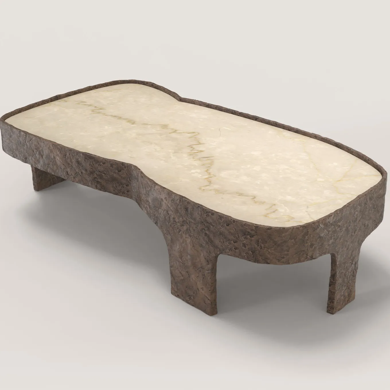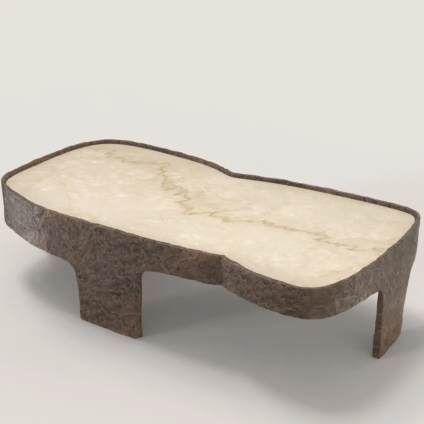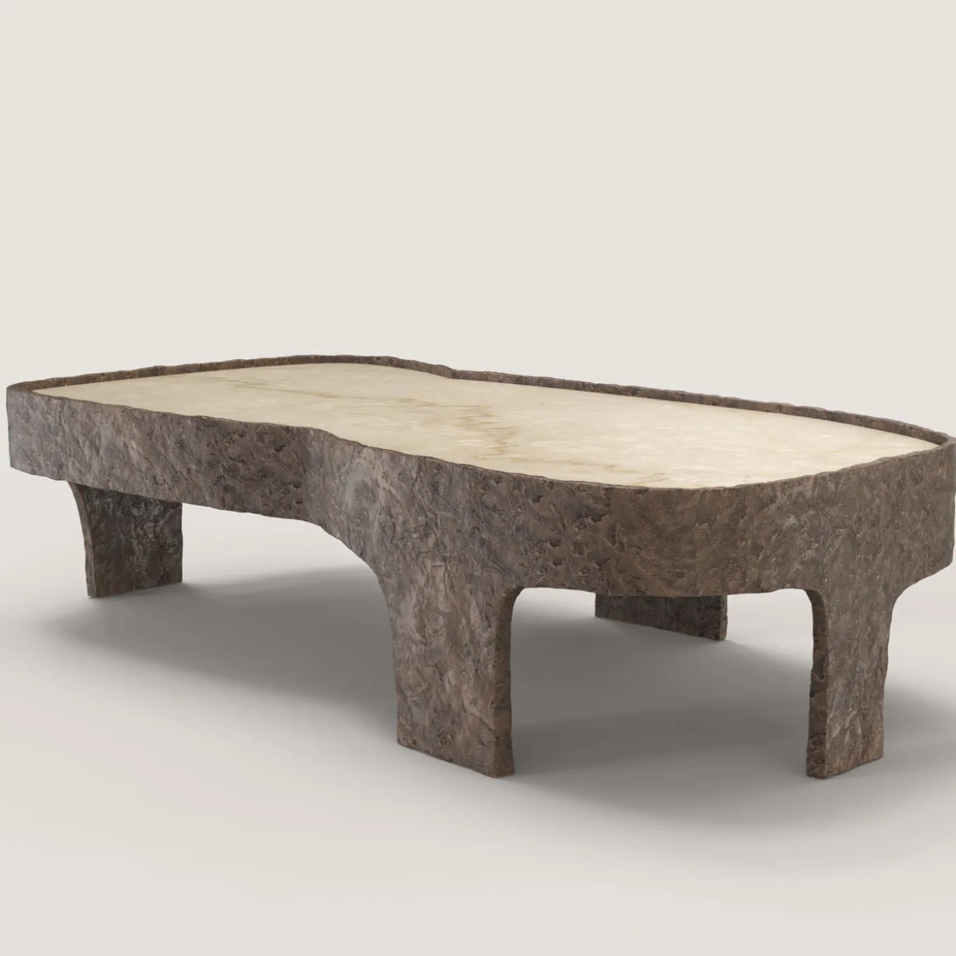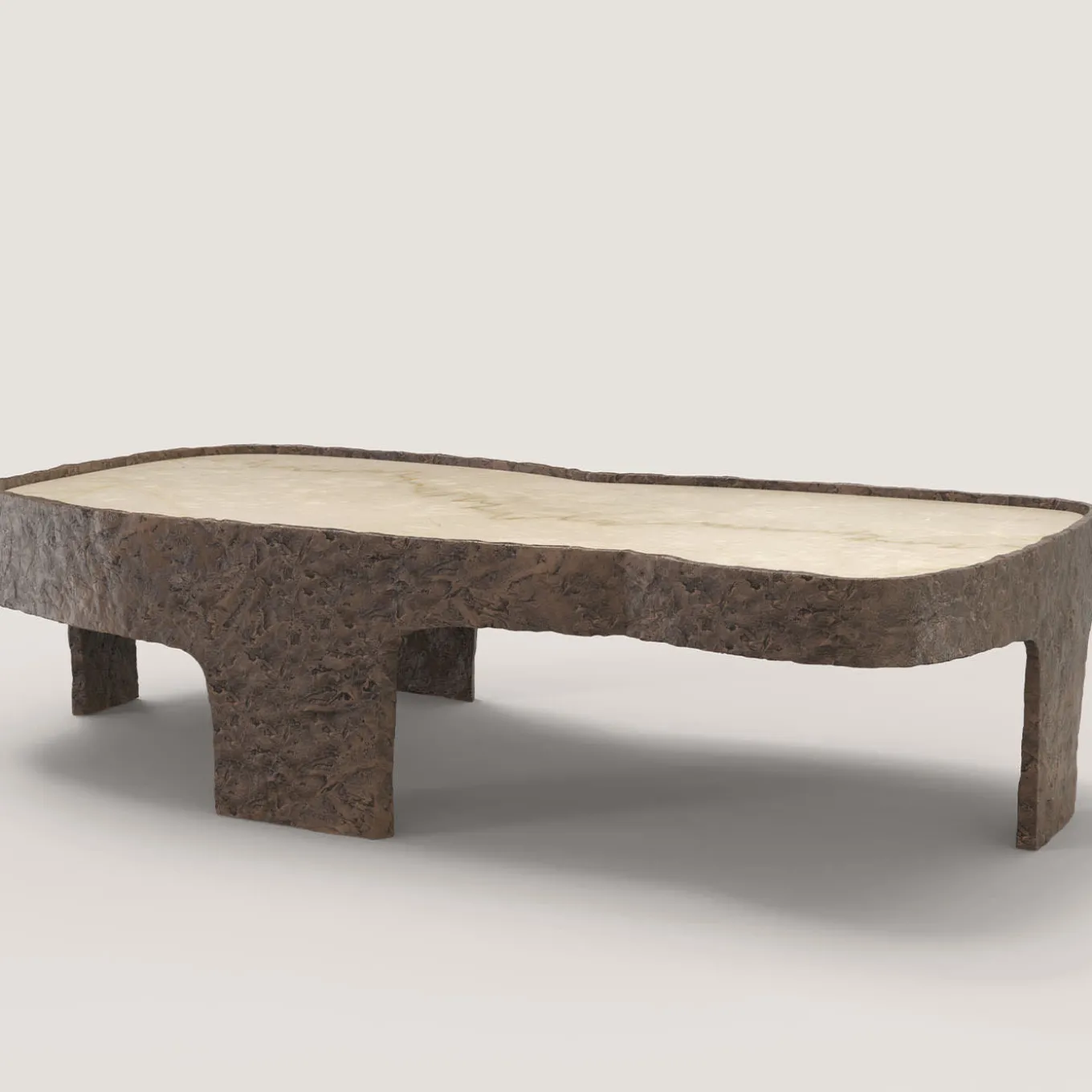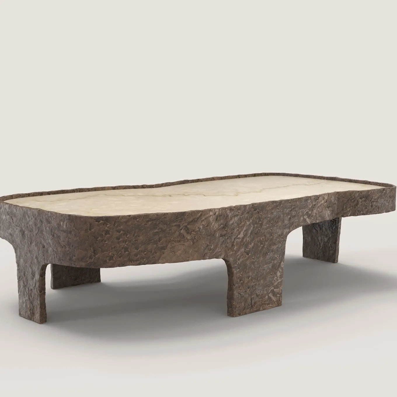 Sumatra V3 è un tavolino del XXI secolo realizzato da artigiani italiani in bronzo fuso con patina marrone chiaro con uno straordinario piano in marmo Botticino Classico. Fa parte del linguaggio del design da collezione Sumatra, sviluppato dal team di ricerca artistica di Edizione Limitata a Milano. L’oggetto fonda la sua eleganza nel contrasto tra la levigatezza della pietra e la texture materica del corpo in alluminio. Edizione limitata di 15 + 3 AP.