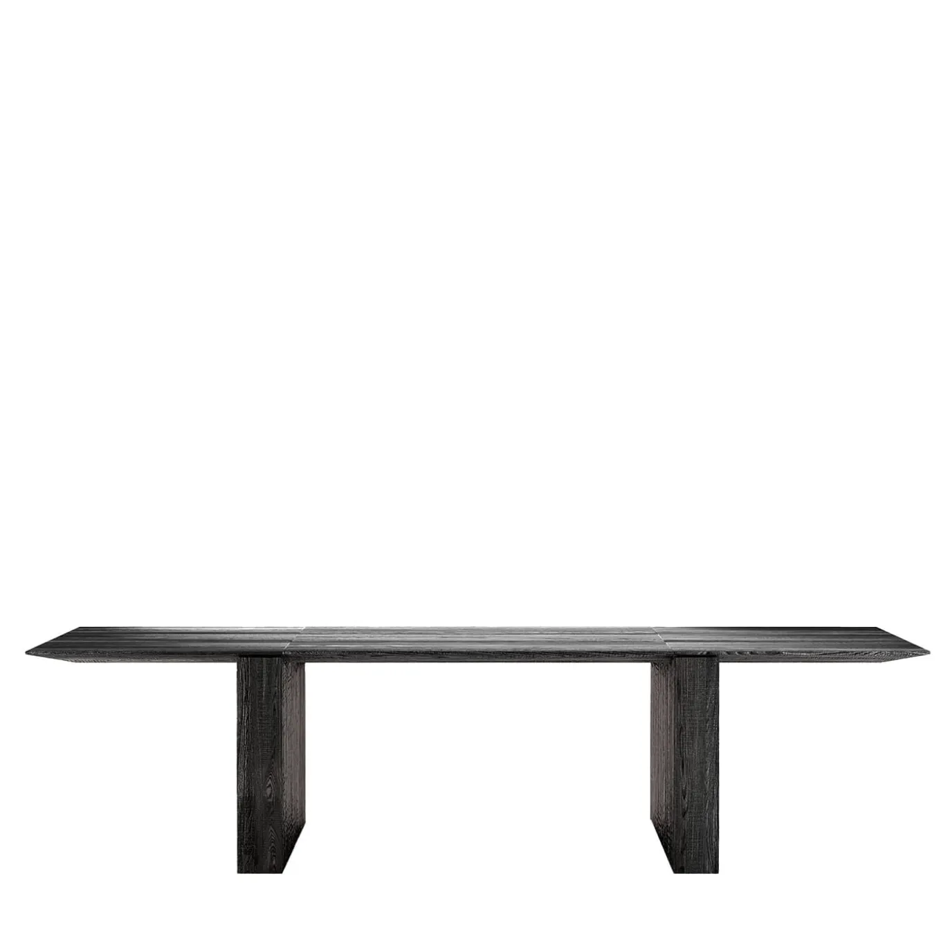 Il tavolo da pranzo Heroes ha una struttura in metallo rivestita in legno di abete anticato, sabbiato e tinto di nero. Il piano è composto da nove pannelli in legno massiccio assemblati su una lastra di alluminio a nido d’ape, sostenuta da due basi svasate a tutta larghezza. Incarna l’espressione più forte del brutalismo formale, con il suo design audace e crudo. Un’edizione unica con una placca in ottone incisa su misura, che si inserisce con forza in qualsiasi ambiente. Dimensioni e finiture personalizzate sono disponibili su richiesta.
