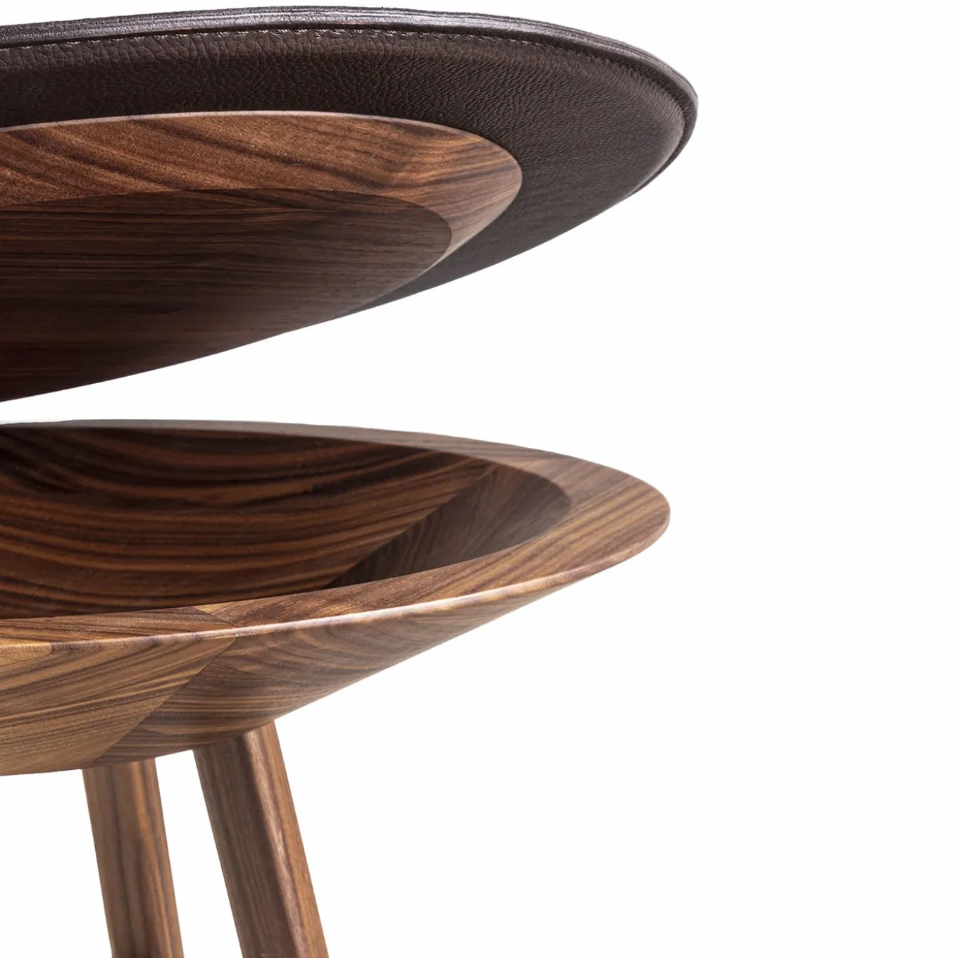 Versatilità e snellezza si incontrano in questo straordinario tavolino d’accento, una soluzione eccellente per arricchire le case moderne caratterizzate da caldi colori neutri. Il piano rotondo rivestito in vera pelle marrone può essere sollevato e staccato per fungere da vassoio indipendente, rivelando un pratico spazio per riporre telecomandi e altri piccoli accessori. Le gambe inclinate aggiungono carattere alla struttura in legno massiccio.