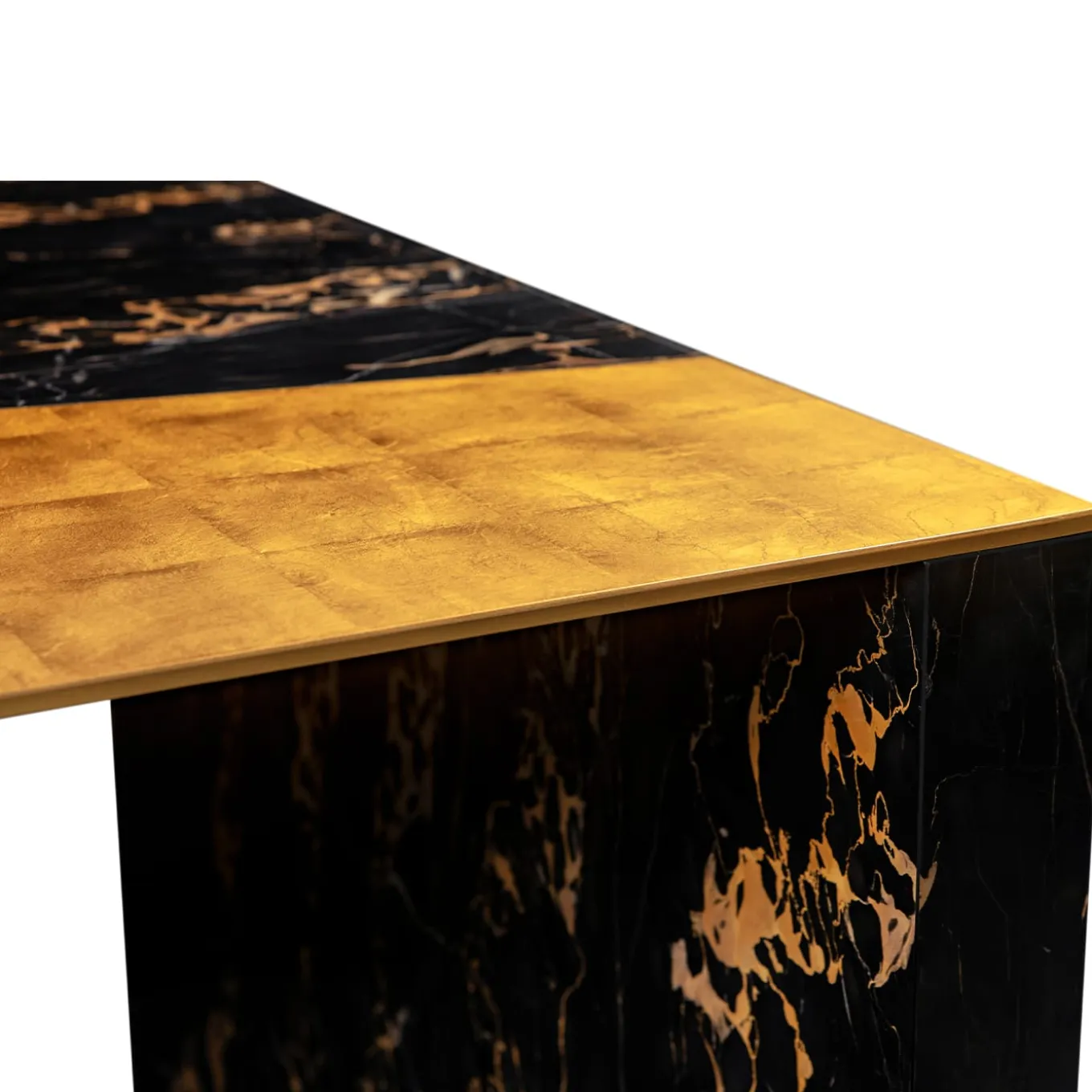 Questo magnifico progetto di Elisabetta Ripamonti e Alex Terzariol fonde un materiale classico e senza tempo come il marmo con un materiale moderno e leggero come l’alluminio. Rifinita in oro, la lastra di alluminio sostiene la robusta e preziosa metà di marmo, reinventando il tradizionale concetto di equilibrio. Fa parte di una serie di pezzi numerati e personalizzabili di Officina Della Scala. Materiali: “marmo Portoro Extra Lucido” e alluminio in foglia d’oro zecchino a 23,9 carati. Per le opzioni di personalizzazione, rivolgersi al Concierge.