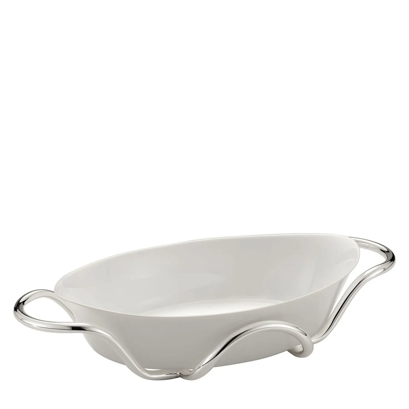 Raffinata soluzione per portare in tavola i cibi appena sfornati, questo portavivande in ottone placcato in argento lucido e dotato di pratiche maniglie è abbinato a una semplice pirofila ovale in ceramica. Un’inconfondibile contemporaneità contraddistingue il set, ideale per completare sia gli ambienti domestici che quelli dell’ospitalità.