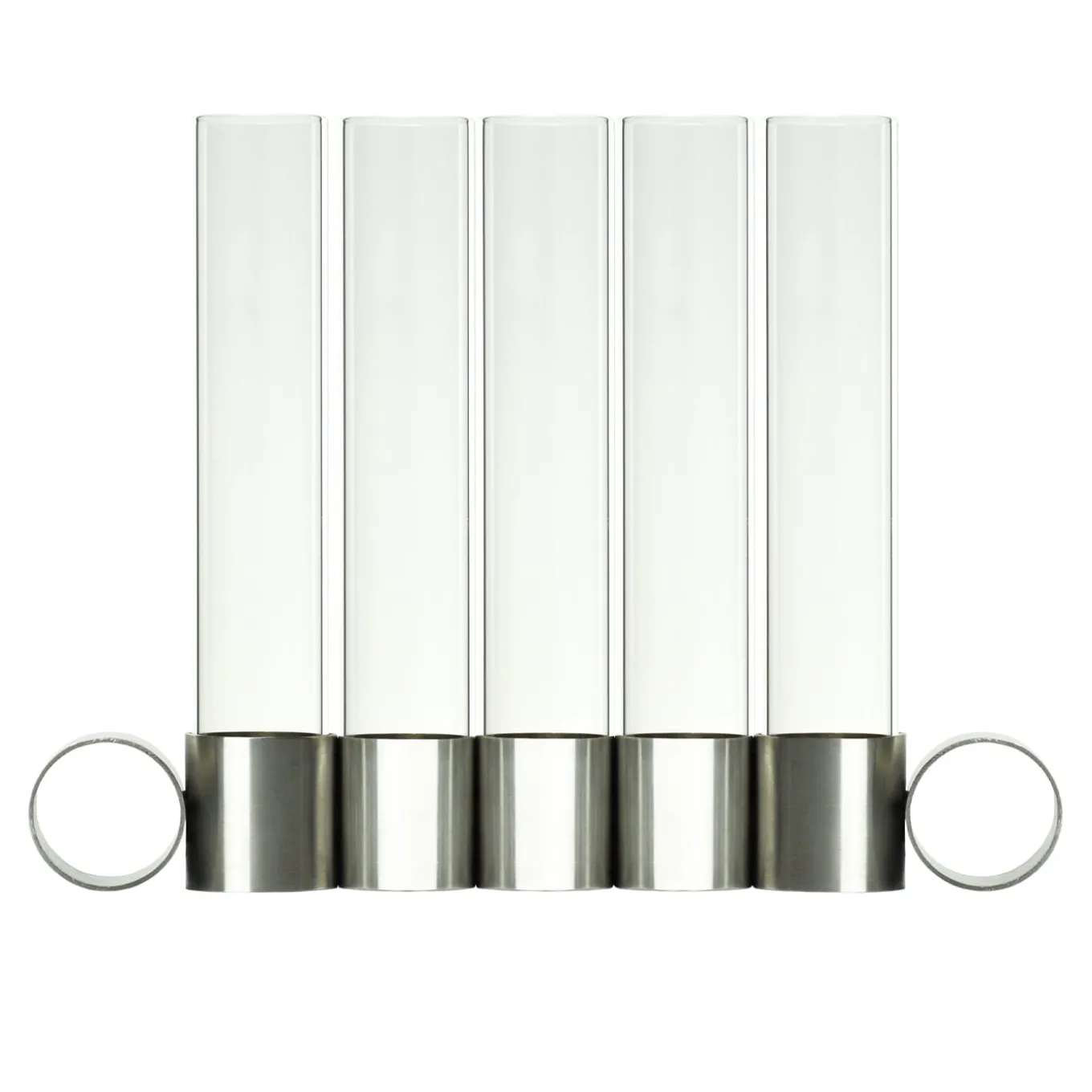 Portacandele e portafiori in un unico oggetto, Tempio del Tempo è stato concepito come un piccolo altare per la casa, creato attraverso l’unione di forme semplici e simboliche che si incastrano senza connessioni e rimangono divisibili: due anelli in acciaio inox uniti tra loro con una saldatura invisibile, una candela in pura cera di soia con stoppino in cotone e un vaso in vetro borosilicato. La chiusura rimovibile della base in acciaio è realizzata in gomma riciclata e crea il supporto ideale per accogliere le candele. Candele e vasi di vetro inclusi.
