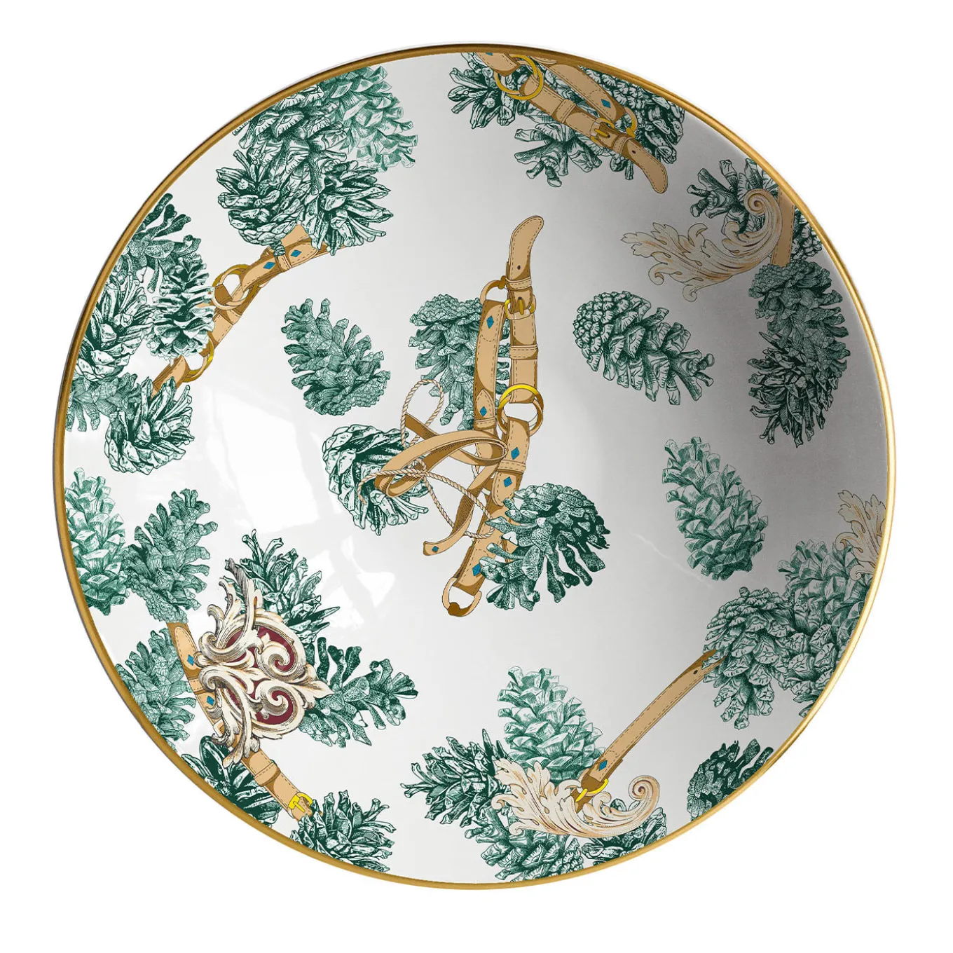 La collezione Big White è dedicata al Natale e alla sua magia. Il design di questa ciotola è costituito da un intreccio di pigne e steccati con dettagli in oro. I colori tipici del Natale sono qui raccolti e utilizzati per raccontare la tradizione e l’immaginario romantico che porta con sé in modo elegante e d’impatto.