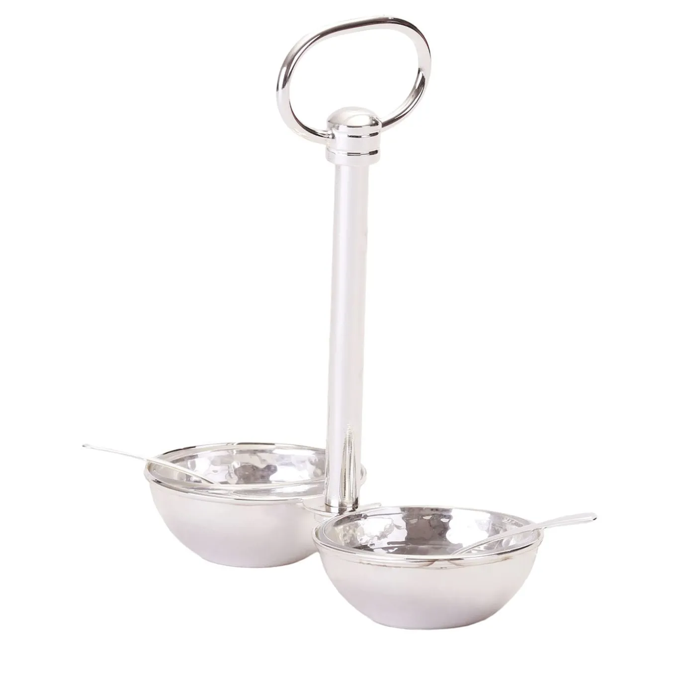 Semplice e raffinato, questo set di ampolle permette di portare in tavola sale e pepe senza rinunciare all’eleganza. Le piccole ciotole in vetro con cucchiai sottolineano ulteriormente lo stile contemporaneo del design, rendendolo ideale per completare facilmente sia i contesti domestici che quelli dell’ospitalità. Un elemento cilindrico sormontato da un manico ad anello completa la silhouette.