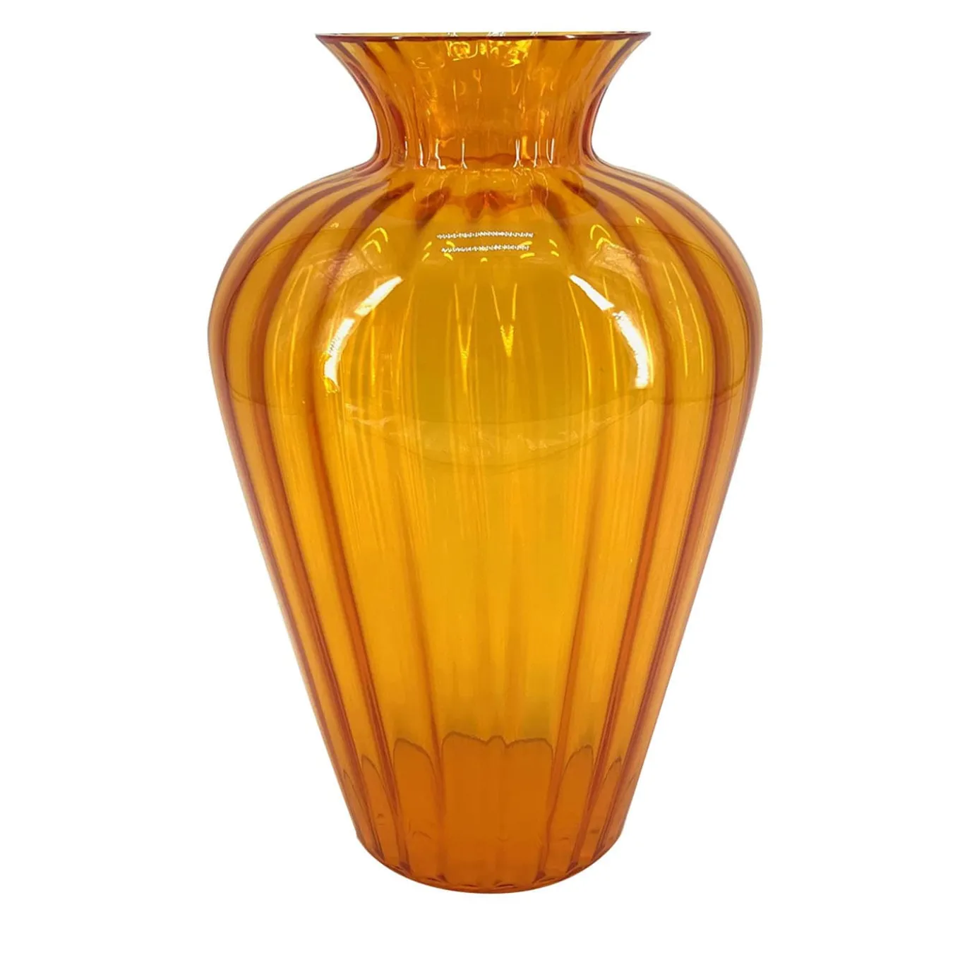 Realizzato magistralmente a mano in vetro soffiato di Murano impreziosito da una chiara tonalità arancione, questo stupendo vaso è decorato con il motivo della trama rigadin, simbolo della tradizione vetraria veneziana. Elegante e singolare, è corredato da un certificato di autenticità. Per ulteriori informazioni, consultare il Concierge.