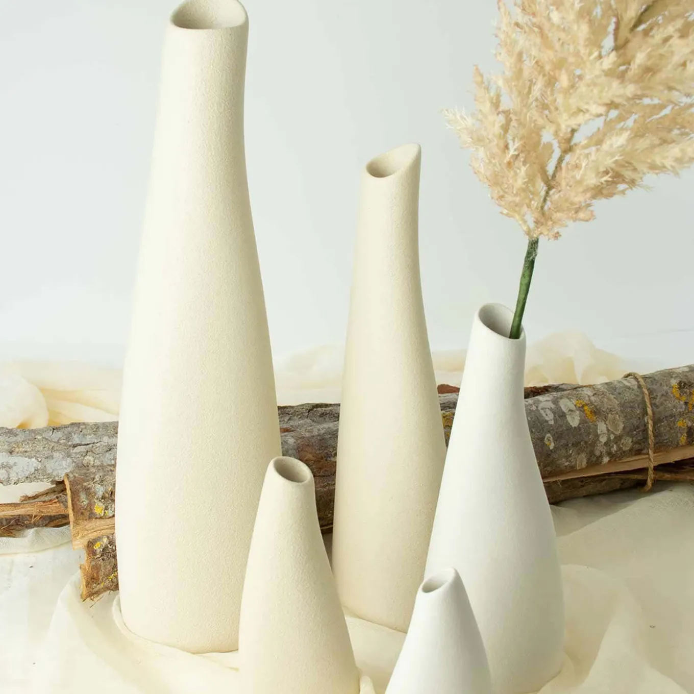 Vasi o bottiglie? Questa raffinata scultura color latte diventa una collezione imperdibile, che porta movimento all’ambiente circostante. Il gioco dinamico di linee morbide e minimaliste conferisce a questo pezzo uno stile raffinato, che rappresenta movimento e fluidità.