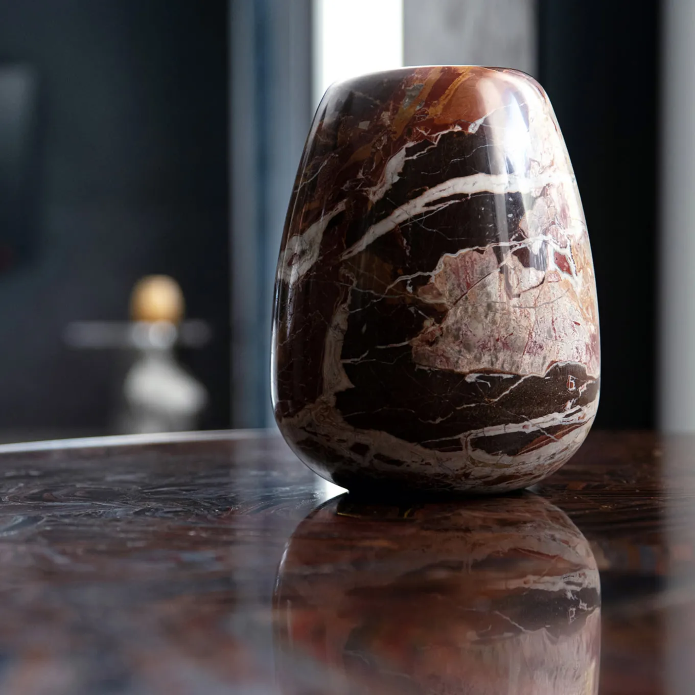 Disegnato per la prima volta dall’architetto Franco Albini nel 1940, questo vaso è una vera e propria opera d’arte che sfoggia una straordinaria allure naturale. Realizzato a mano in un unico pezzo di Breccia Pontificia, un elegante e prezioso marmo italiano proveniente dalla Sicilia, presenta eleganti e luminose venature bianche e rosse. Appartiene a una serie di modelli numerati e certificati dell’Officina Della Scala. Chiedete al Concierge le opzioni di personalizzazione.