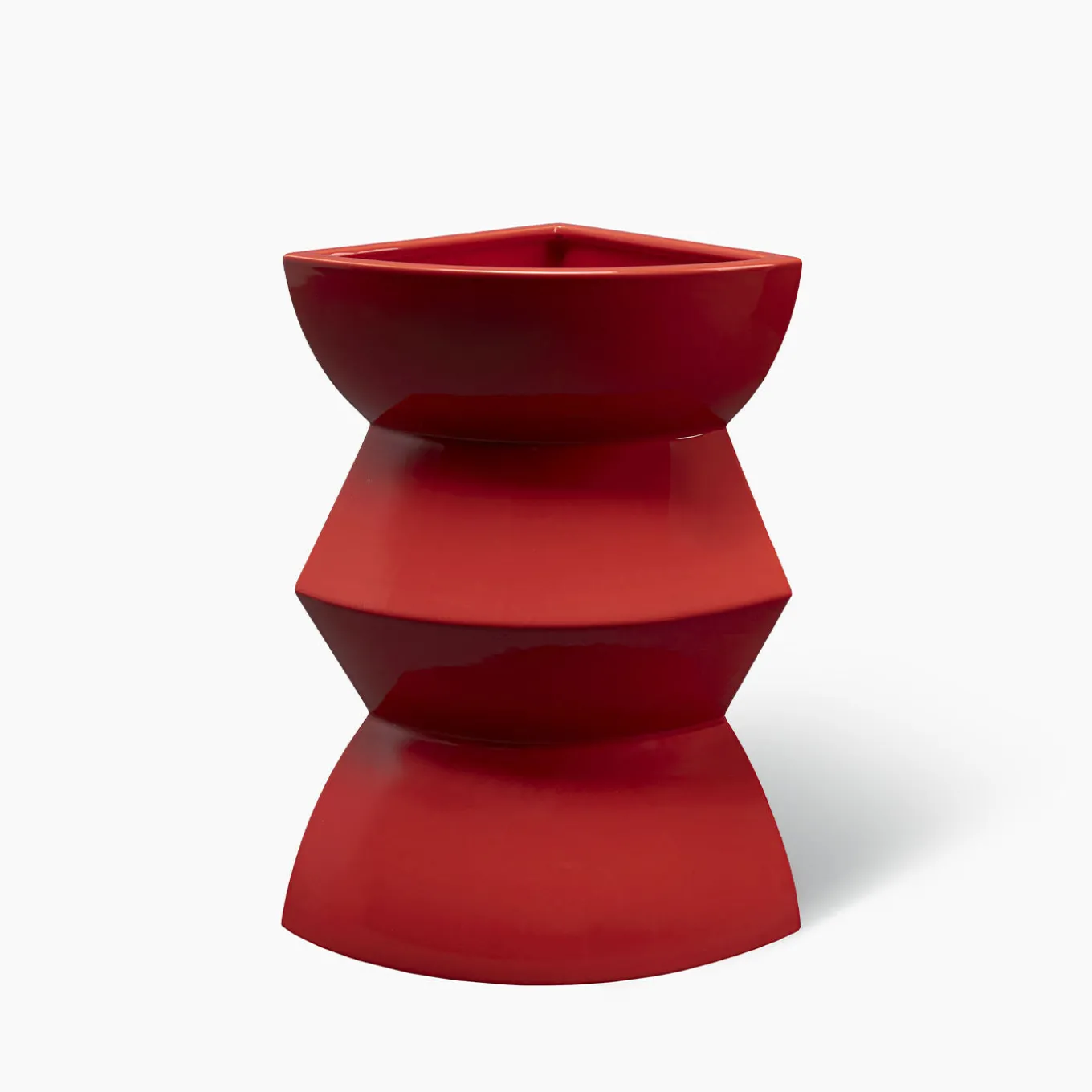 Un’audace combinazione di concavità e convessità traccia i profili dinamici di questo vaso in ceramica rosso corallo, un pezzo esclusivo e ricco di fascino scultoreo. Parte della Collezione Curve & Isola, che conta molteplici e coloratissime opzioni, è caratterizzato da un design angolare, che lo rende ideale per gli angoli o per i gemelli per organizzare composizioni scenografiche assortite.