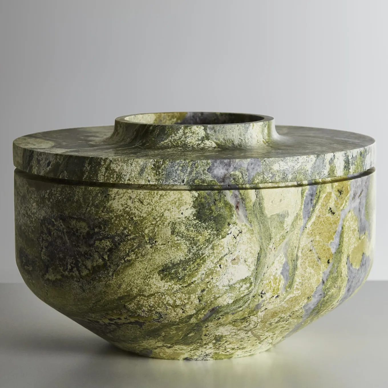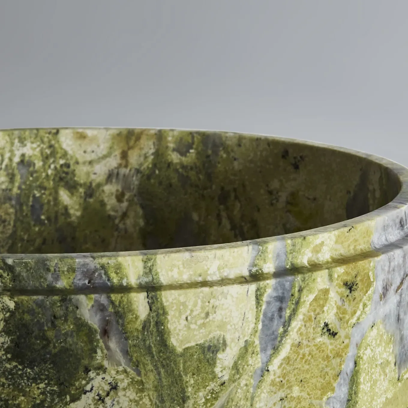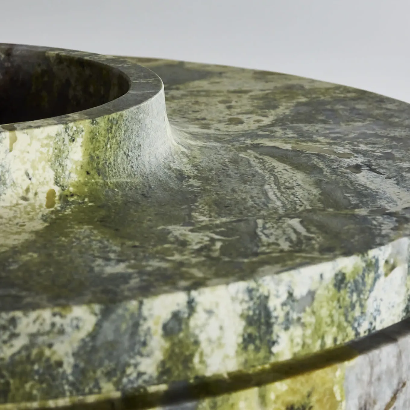 Parte della prima linea di complementi d’arredo in marmo disegnata da Christophe Pillet per Kreoo, questo straordinario vaso può essere esposto da solo o con i fiori. Dalla forma sottile e slanciata, è ricavato da un blocco massiccio di marmo verde, levigato e sormontato da un elemento circolare dall’elegante tocco decorativo. Disponibile in altre versioni sul catalogo Artemest, si prega di consultare il Concierge per le personalizzazioni.