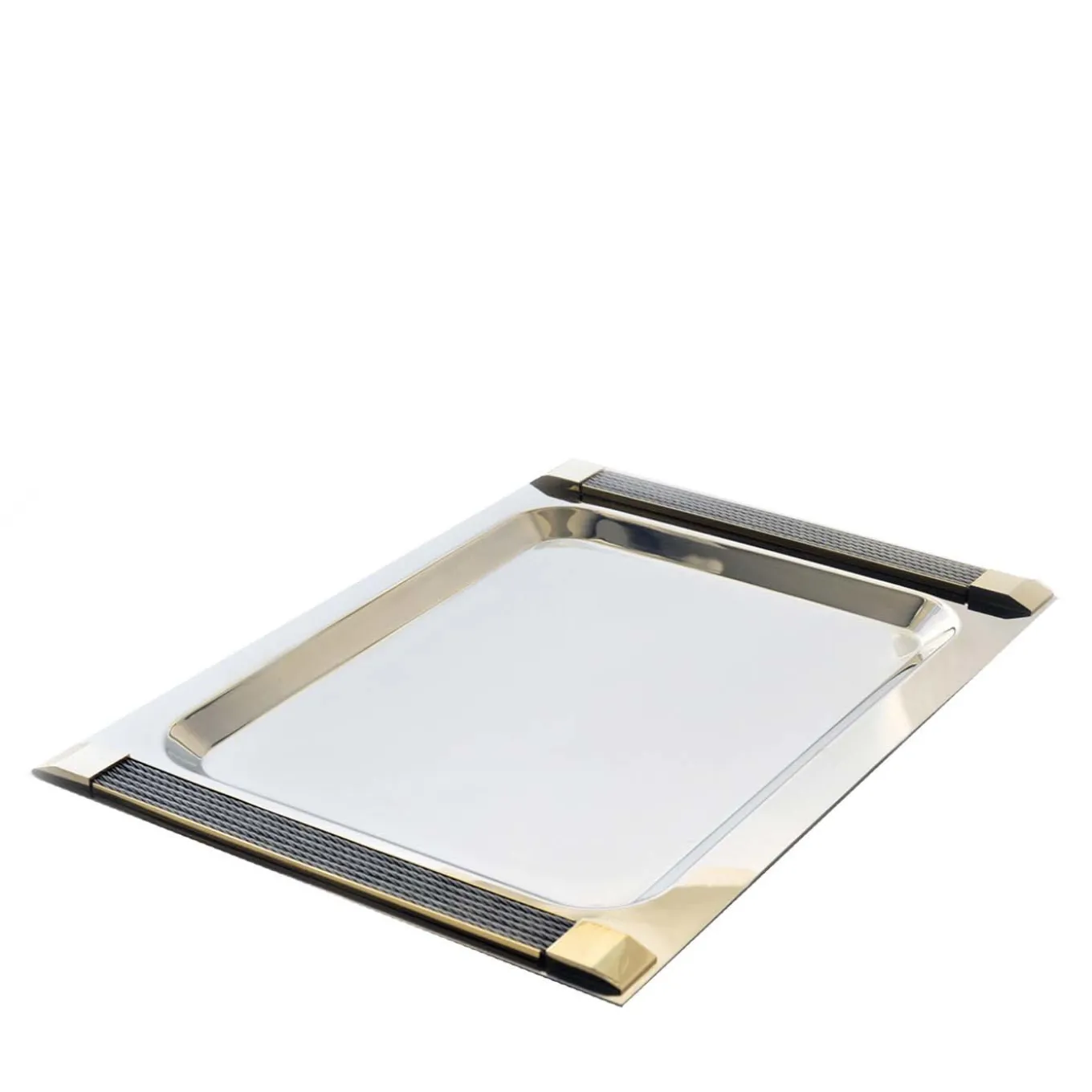 Ispirato agli happy hour in riva al mare, il vassoio da portata Nautical di Nino Basso è perfetto per le serate divertenti in barca. Il vassoio da portata contemporaneo in ottone nichelato è arricchito da cavi nautici in acciaio inossidabile, uniti al vassoio da ottone placcato oro 24 carati. È disponibile anche un set complementare di pinze per il ghiaccio.