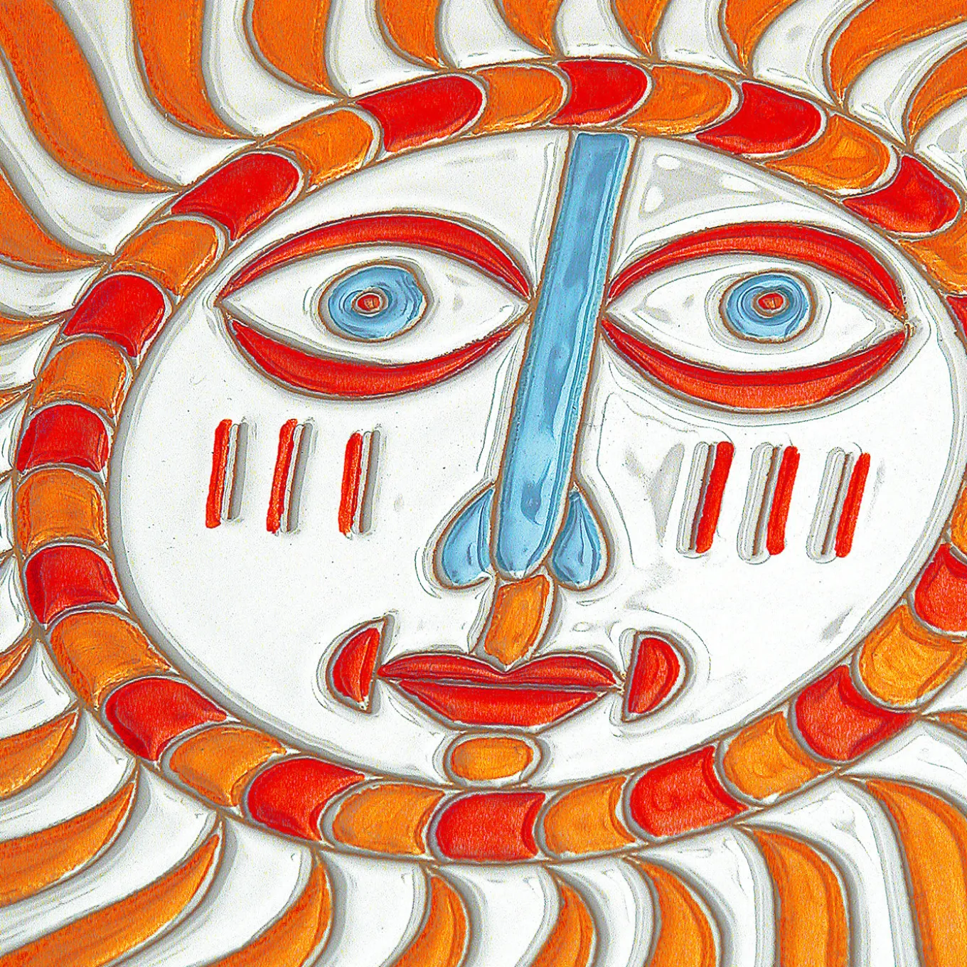 Questo singolare vassoio rotondo unisce le tradizioni e l’unicità della Sardegna. Brilla dei caldi colori dell’estate (“estate” in italiano) ed è completamente realizzato a mano. Al centro si trova una decorazione applicata a mano di un sole stilizzato, ottenuta con l’antica tecnica del “graffito”, con graffi applicati sulla terracotta insieme a smalti dai colori vivaci.