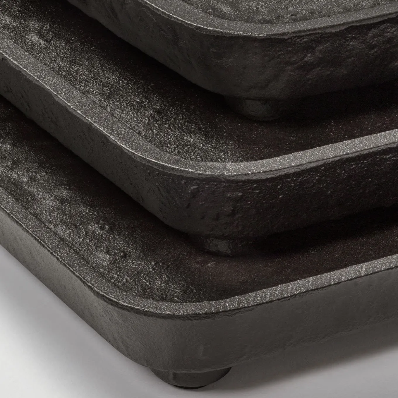 La collezione Monza, ora declinata in una serie di creazioni in fusione di alluminio con finitura bronzo, si ispira alla semplicità e alla forza delle forme classiche e le fonde con un design moderno ed essenziale, aggiungendo al mix le naturali imperfezioni della superficie che creano suggestive ombre, rendendo questi pezzi piccole opere d’arte dal tocco primordiale.