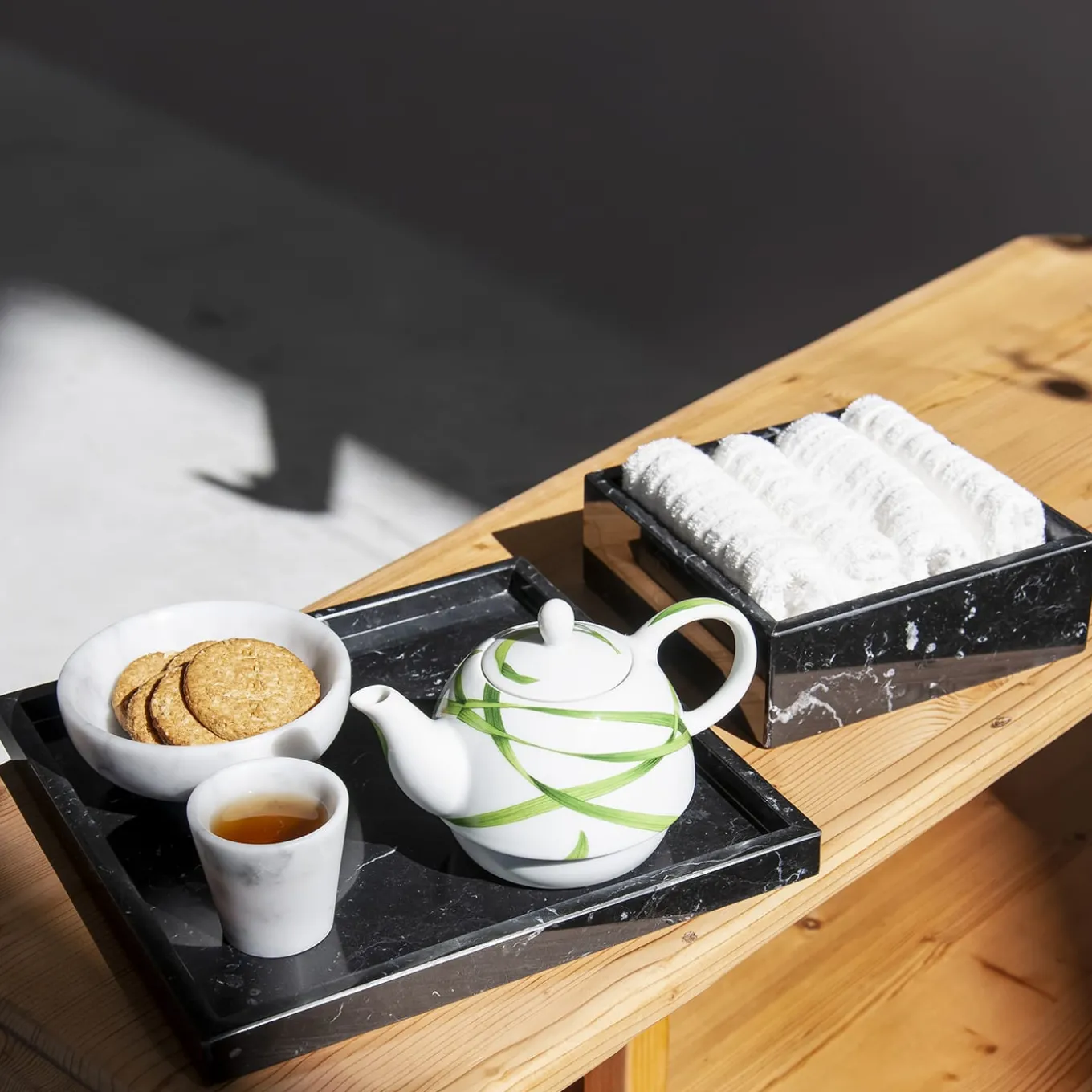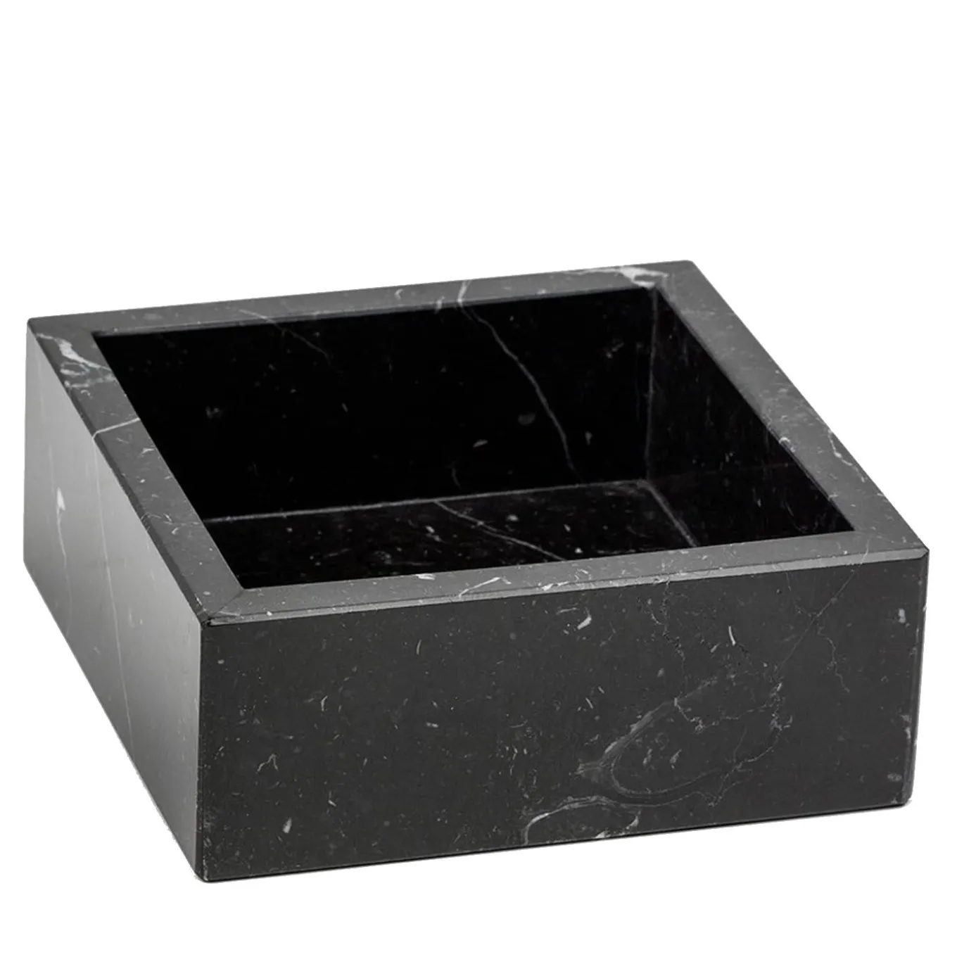 Questo vassoio fa parte di una serie di accessori per il bagno che combinano una silhouette elegante e minimalista con il lusso del marmo. Realizzato in marmo nero, questo pezzo ha una base quadrata con lati alti ed è ideale per riporre gli asciugamani degli ospiti in un bagno di servizio o nella stanza degli ospiti. Può essere abbinato al set da bagno 4 pezzi Black Marble per ottenere un look coeso. Il peso totale è di 1,67 kg.