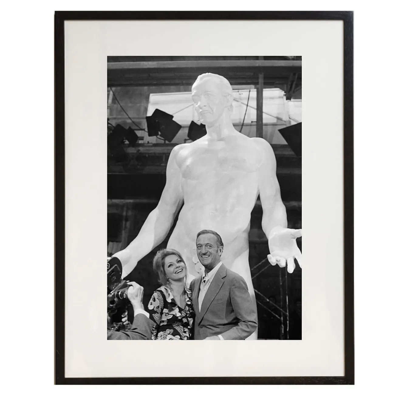Questa stampa a pigmenti su carta baritata è stata realizzata dal fotografo Keyston. In questo particolare scatto, siamo testimoni dell’attore inglese David Niven. Il 20 maggio 1970, negli studi di Cinecittà a Roma, l’attore inglese David Niven svela una sua statua di nudo, assistito dall’attrice Virna Lisi (1936-2014). Cornice tradizionale in legno inclusa. Il formato della stampa è 12×16″ / 30×40 cm e quello della cornice è 16x23x2″ / 40x58x5 cm. Foto di Keystone/Hulton Archive/Getty Images. Accompagnata da certificato di autenticità.