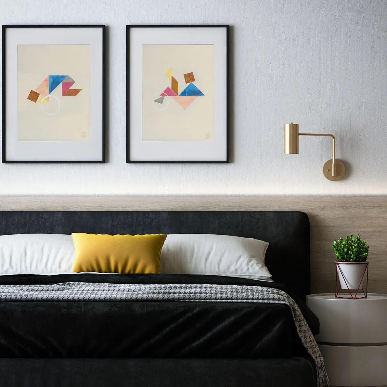 Questa stampa interpreta il gioco del Tangram, un puzzle di dissezione composto da sette poligoni piatti, chiamati tan, disposti in modo deliberatamente sbagliato per simboleggiare la sottile linea di demarcazione tra giusto e sbagliato. Il quadro è un mix di tecniche ed è stampato su carta di cotone al 100% con il metodo fine art giclée. Si prega di contattare il Concierge per includere una cornice o per ottenere la versione originale in cartone dipinto.